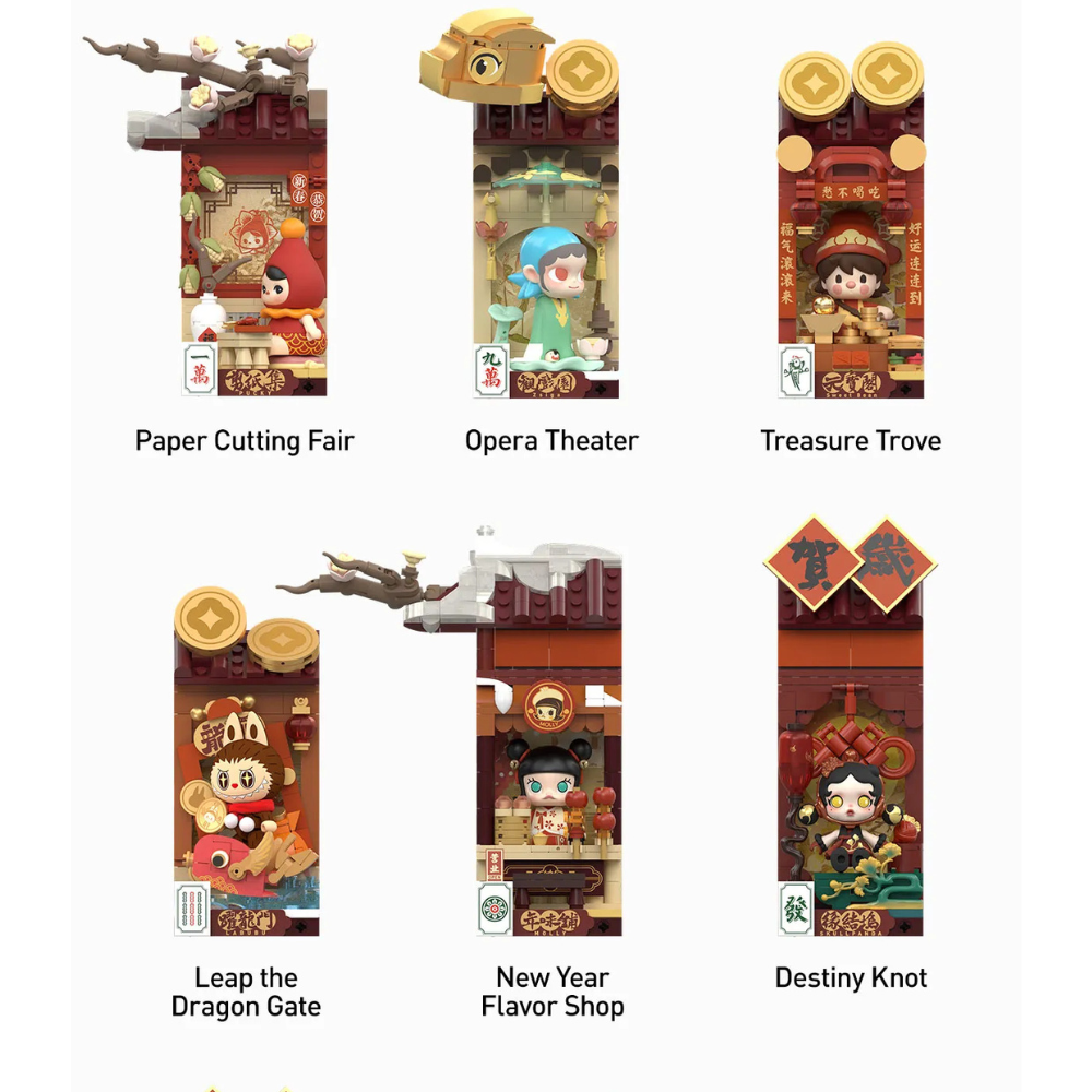 Dive into the festive world of POP MART's Wealthy Snake's New Year Celebration Series Block . Each surprise box invites you to assemble a miniature scene inspired by Chinese New Year festivities, featuring snap-together building brick elements, symbolically rich backdrops, and detailed figurines. Luck, prosperity, and happiness are all part of each creation!