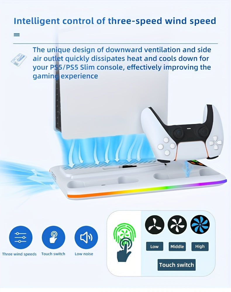 Découvrez le CoolBase – Station de Refroidissement PS5, une solution tout-en-un pensée pour les joueurs qui veulent optimiser leur expérience console. Avec un système de refroidissement performant, un chargeur double et un éclairage LED RGB, cette station est conçue pour rester discrète sous votre écran tout en protégeant votre PS5 de la surchauffe lors de sessions intenses.